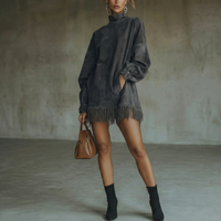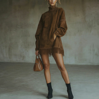 ADELA™ | Vestido de cuello alto de ante con flecos