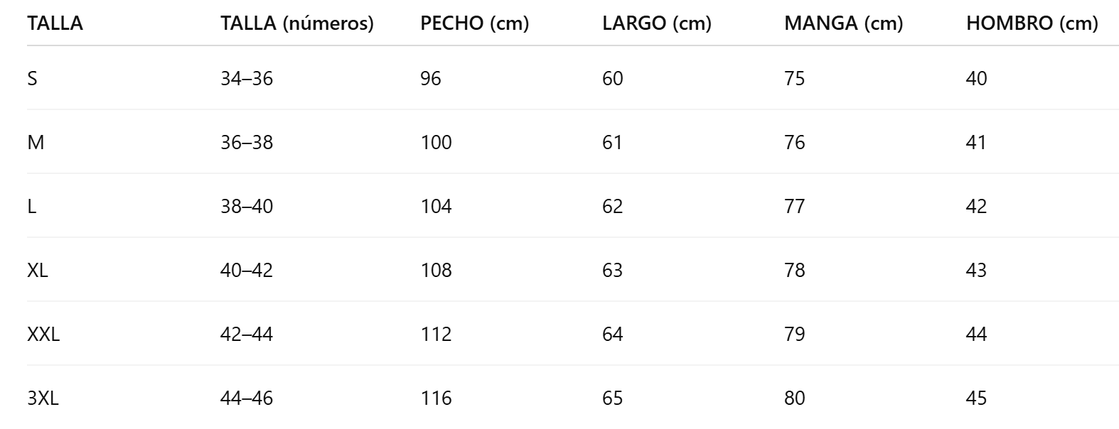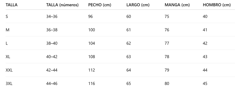 Guía de tallas