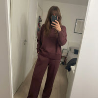 Este conjunto combina minimalismo, elegancia y una estética moderna pensada para el día a día. El suéter de corte oversize ofrece una caída relajada y sofisticada, aportando comodidad sin perder estilo. Su textura suave y el acabado acanalado en puños y bajo crean un equilibrio perfecto entre sencillez y diseño. Es una prenda versátil que se adapta tanto a un look casual como a propuestas más elevadas.