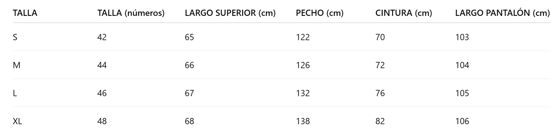 Guía de tallas