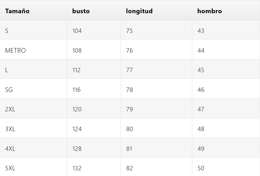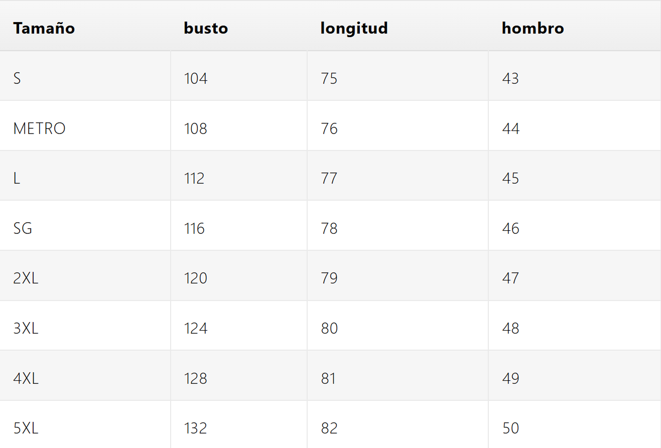 Guía de tallas