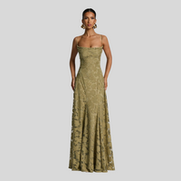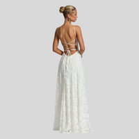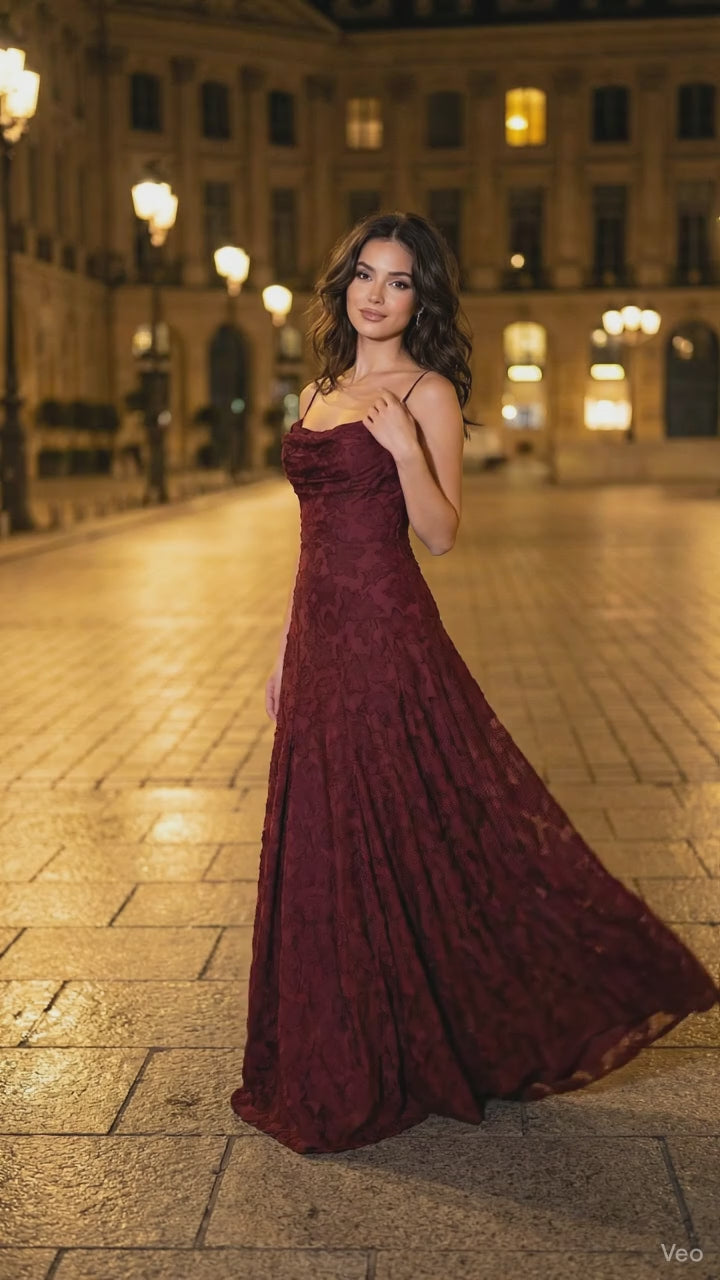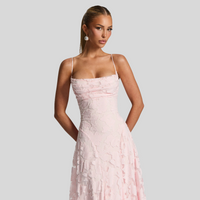 Los finos tirantes y la estructura del vestido permiten un ajuste cómodo y favorecedor, estilizando el torso y aportando una caída ligera desde la cintura hacia la falda. El tejido con relieve floral añade profundidad visual y un toque de lujo, convirtiendo esta pieza en una opción llamativa sin ser excesiva. Cada detalle está cuidadosamente pensado para ofrecer comodidad, estilo y una presencia impecable.