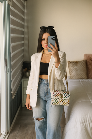 Su diseño limpio y minimalista lo hace fácil de combinar con jeans, pantalones de vestir o faldas, adaptándose tanto a looks casuales como más elegantes.