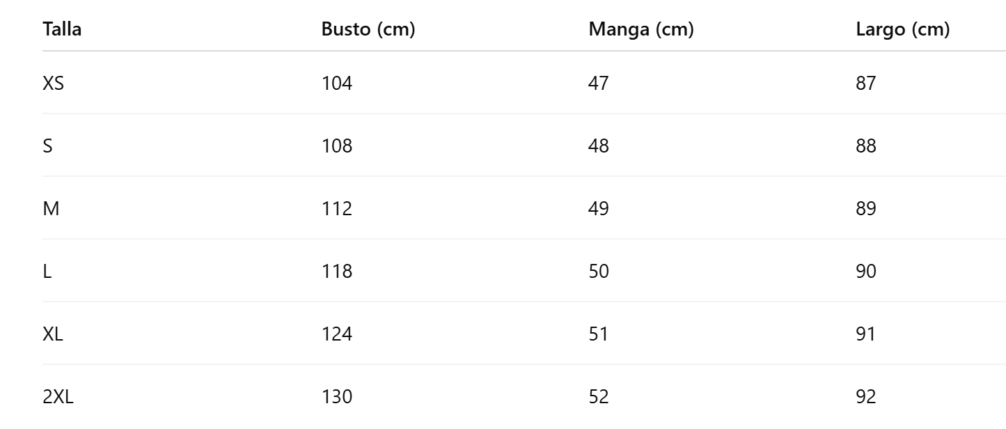 Guía de tallas