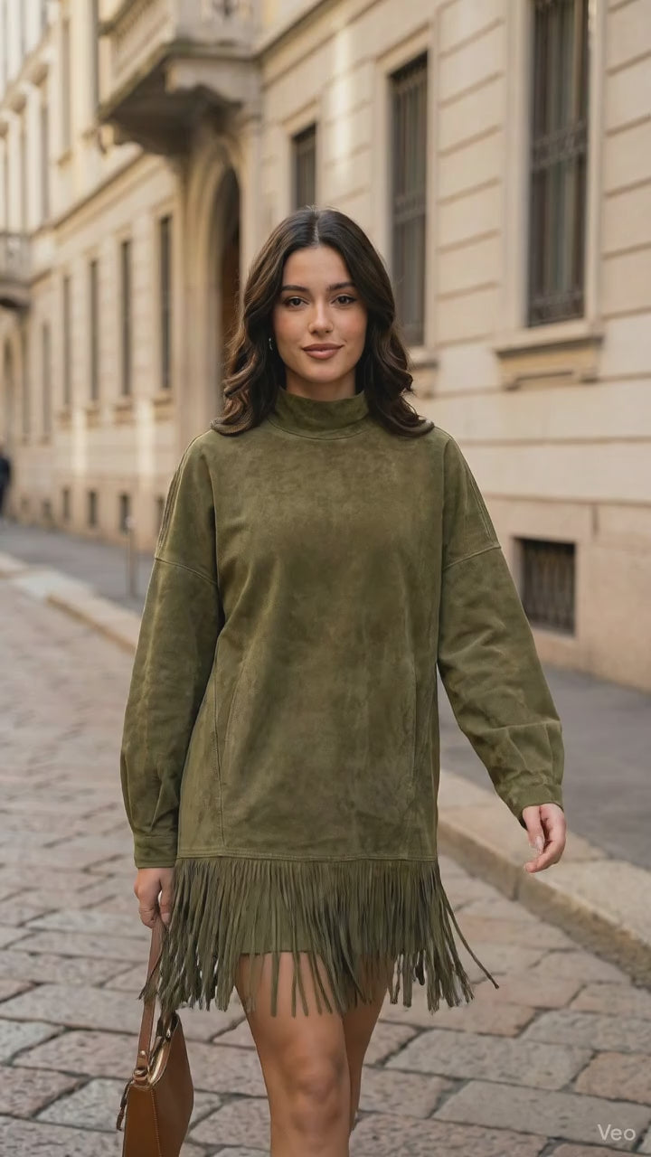 Gabriela | Vestido de ante con cuello alto y flecos