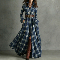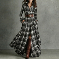 Este vestido camisero largo de inspiración western redefine el estilo elegante con un toque rústico irresistible. Su estampado de cuadros en tonos azul profundo crea una presencia sofisticada y poderosa, mientras que la silueta fluida aporta movimiento y una caída impecable que acompaña cada paso con naturalidad. El cuello estructurado y los bolsillos frontales con solapa refuerzan ese aire masculino–femenino tan característico que lo hace único.