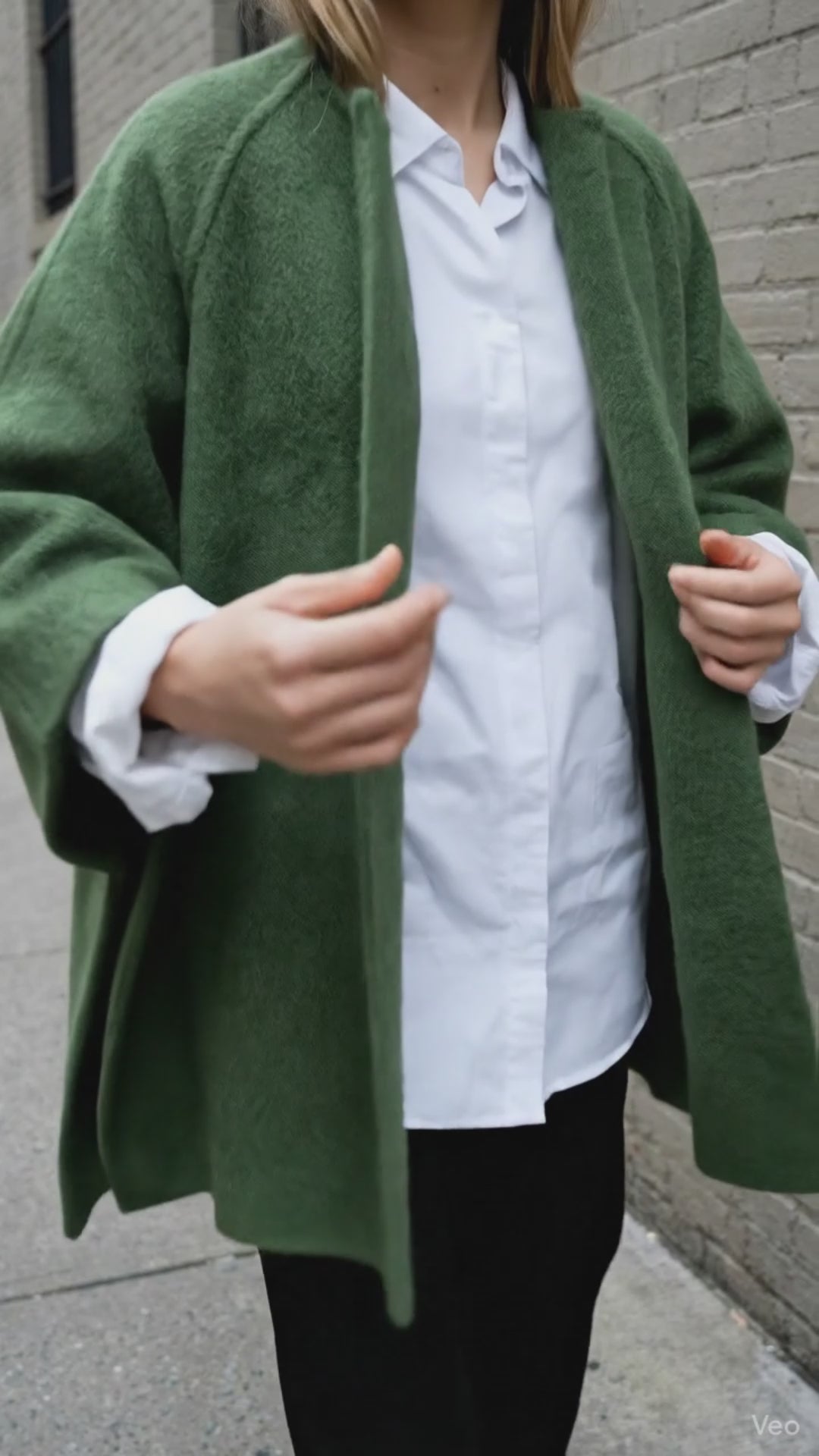 La estructura amplia de las mangas y el corte recto ofrecen comodidad y libertad de movimiento, aportando un aire relajado pero muy chic. El contraste entre la chaqueta y una camisa blanca —como se muestra en la imagen— realza su estética premium y convierte la prenda en un básico versátil para la temporada. Ligera y estilosa, es perfecta para llevar en entretiempo o para añadir una capa elegante a tus outfits diarios.