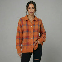 Este jersey de punto con diseño tartán es la combinación perfecta de estilo casual y calidez invernal. Su textura suave y acogedora ofrece una sensación confortable desde el primer momento, mientras que el estampado a cuadros aporta un aire clásico y atemporal. El cierre frontal con botones convierte la prenda en una opción versátil que puedes llevar abierta como sobrecamisa o cerrada como suéter.