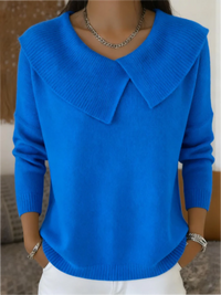 El tejido de punto suave y agradable al tacto envuelve el cuerpo con calidez sin resultar pesado, mientras que los acabados acanalados en cuello, puños y bajo aportan estructura y un ajuste favorecedor. El escote en pico sutil estiliza la zona del cuello y realza el diseño de forma elegante y femenina.