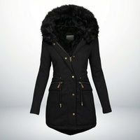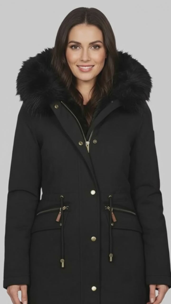 Este elegante abrigo con capucha de pelo sintético es la combinación perfecta entre estilo, calidez y funcionalidad. Diseñado para resaltar la figura con un corte entallado, ofrece un look moderno y sofisticado ideal para el invierno. Su capucha amplia con forro de felpa aporta un toque lujoso y una protección extra contra el frío.